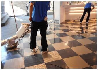 当社はホテルやオフィスビルの床清掃を得意としています。
